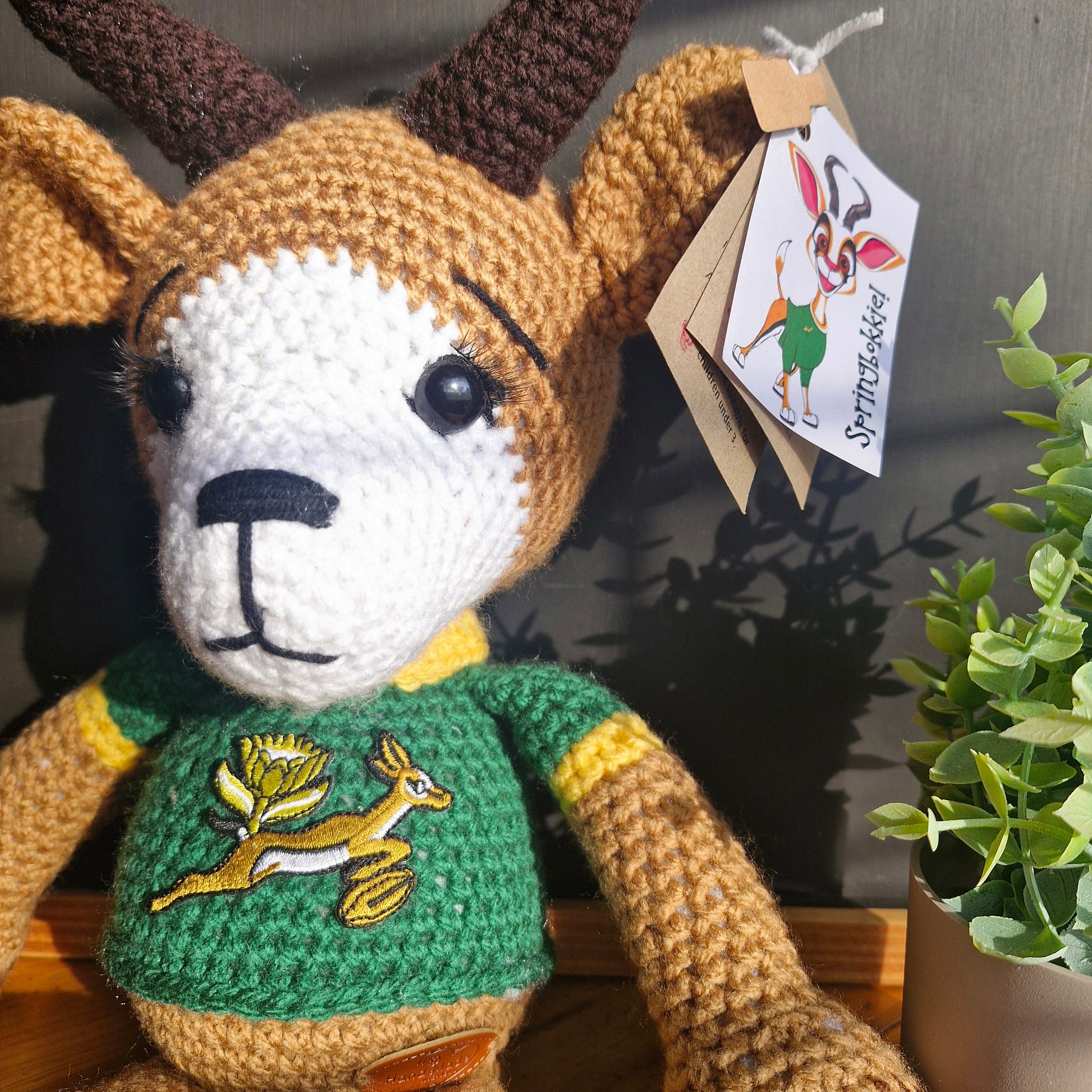 This adorable amigurumi springbokkie is lovingly handcrafted by Liewe Ouma using soft, high-quality cotton wool, making it gentle to the touch and perfect for little hands. Inspired by the beauty of nature, this charming creation adds a playful yet timeless touch to nursery décor or gift collections. Carefully crocheted with attention to detail, it’s ideal as a keepsake, decorative accent, or thoughtful gift. Designed to be treasured, this springbokkie celebrates handmade craftsmanship and natural simplicity.