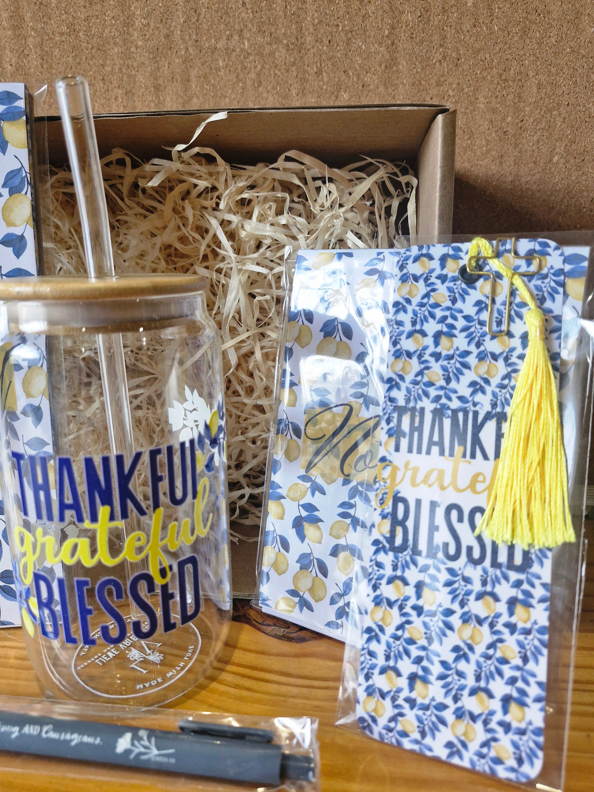 Our beautifully curated gift boxes are thoughtfully put together to celebrate a truly special person. Each box includes a selection of carefully chosen items: stylish notepads, a Libbey Glass, a matching bookmark, and a pen – all perfectly packaged in a gift box, ready to give.