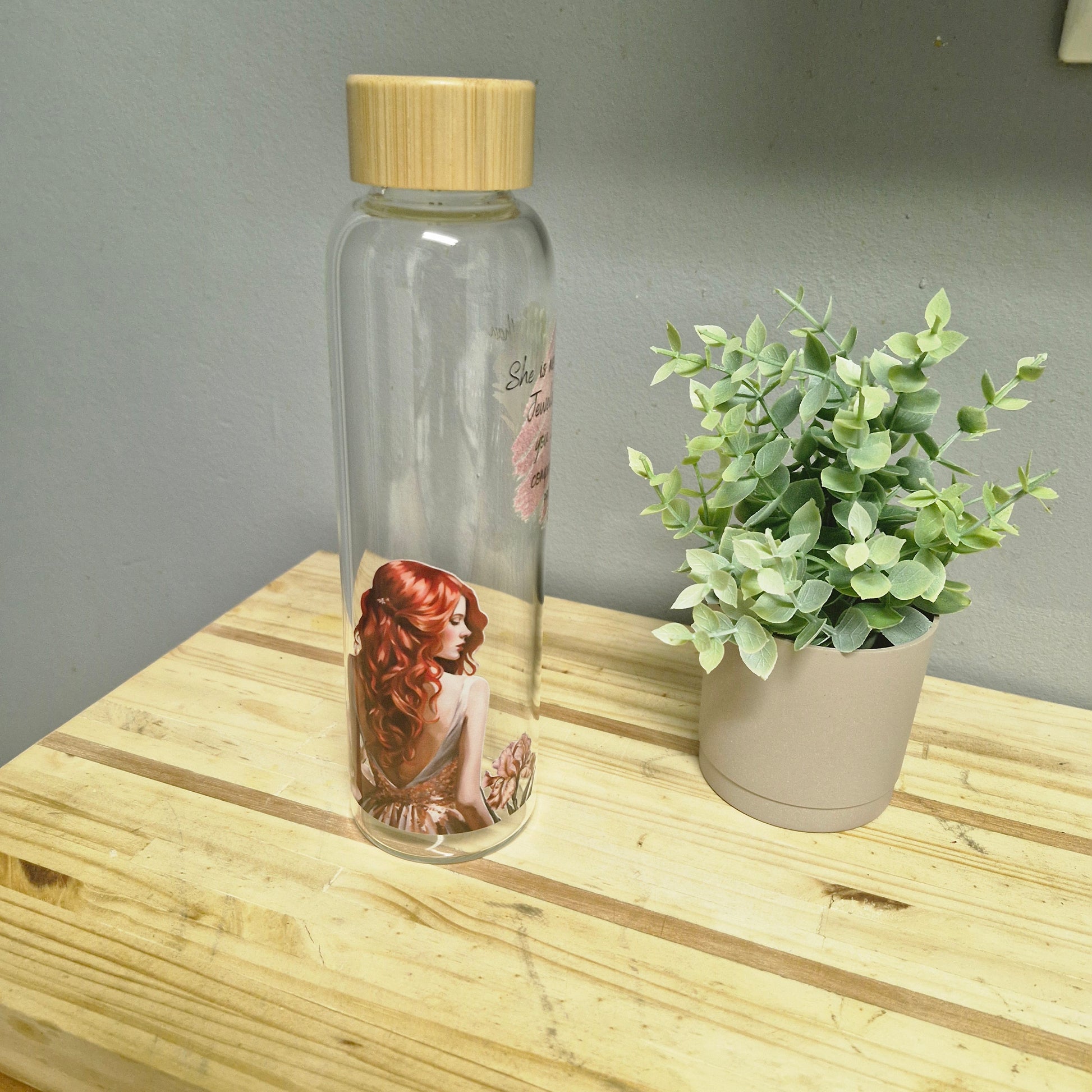 Perfect for everyday use at work, school, the gym, or on the go, each bottle features a unique design that adds a personal touch. The smooth glass surface is easy to clean, while the secure wooden cap provides a leak-resistant seal.