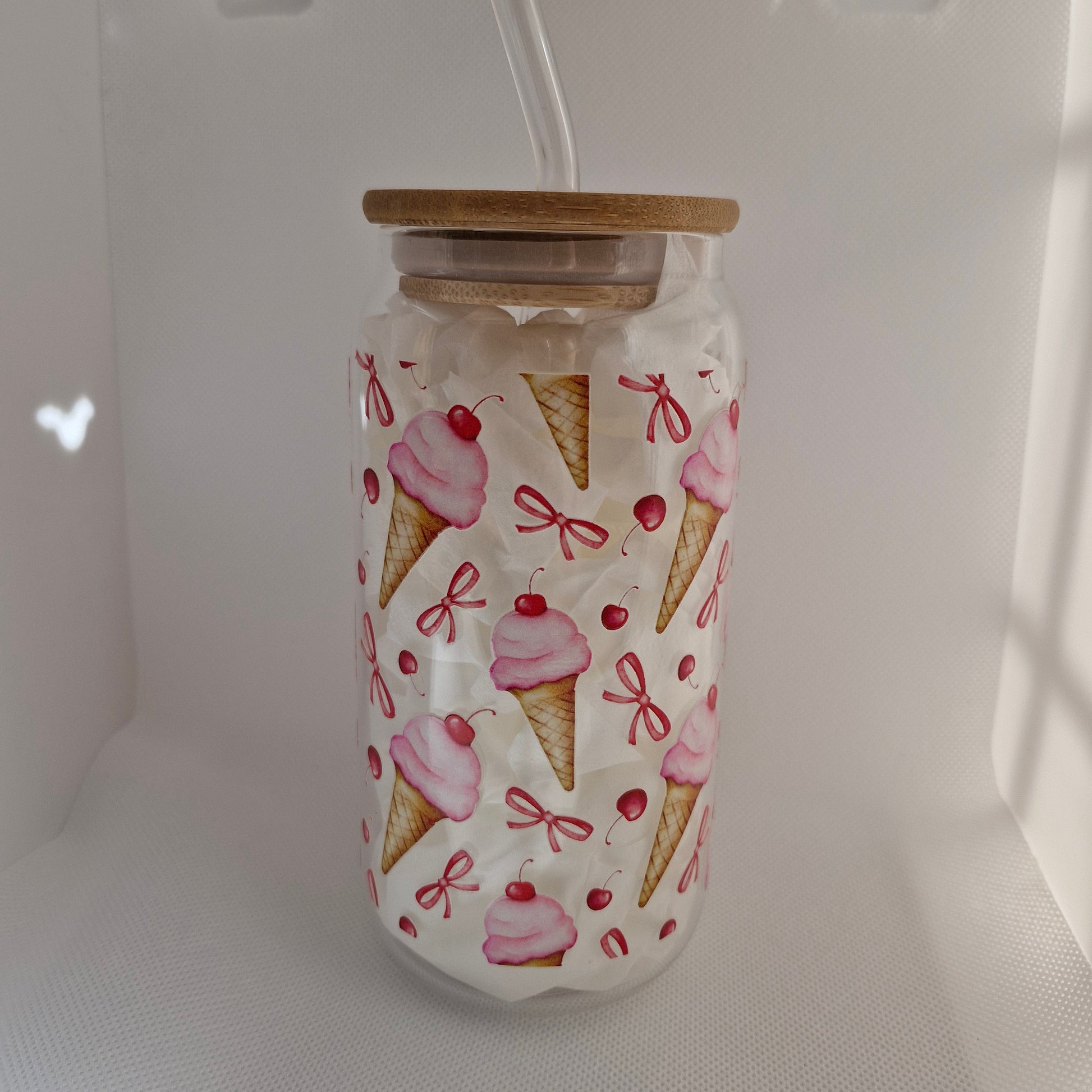 Add a scoop of joy to your drinkware collection with our Libbey glass featuring playful ice cream designs. Crafted from high-quality, durable glass, this stylish piece is perfect for iced coffee, milkshakes, smoothies, or your favorite cold drinks. The cheerful ice cream artwork brings a fun, summery feel, making it ideal for everyday use, parties, or as a sweet gift.