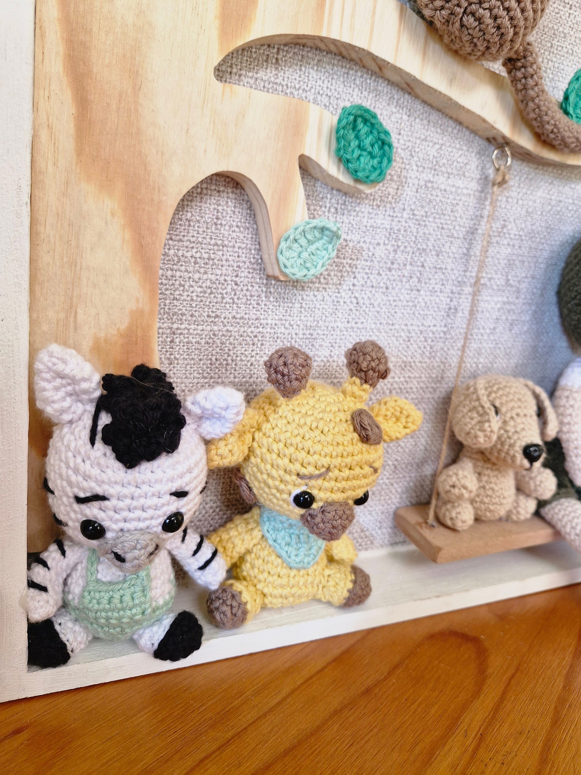 The Safari Theme includes a boy with Safari Suit and his dog on a swing, a giraffe, monkey on the tree, lion and zebra. Each piece is lovingly made with attention to detail, combining soft textures and natural elements to create timeless nursery accents. Perfect for nurseries, baby showers, and heartfelt gifts, every item in the Lil’ LOV Collection is created to be treasured.